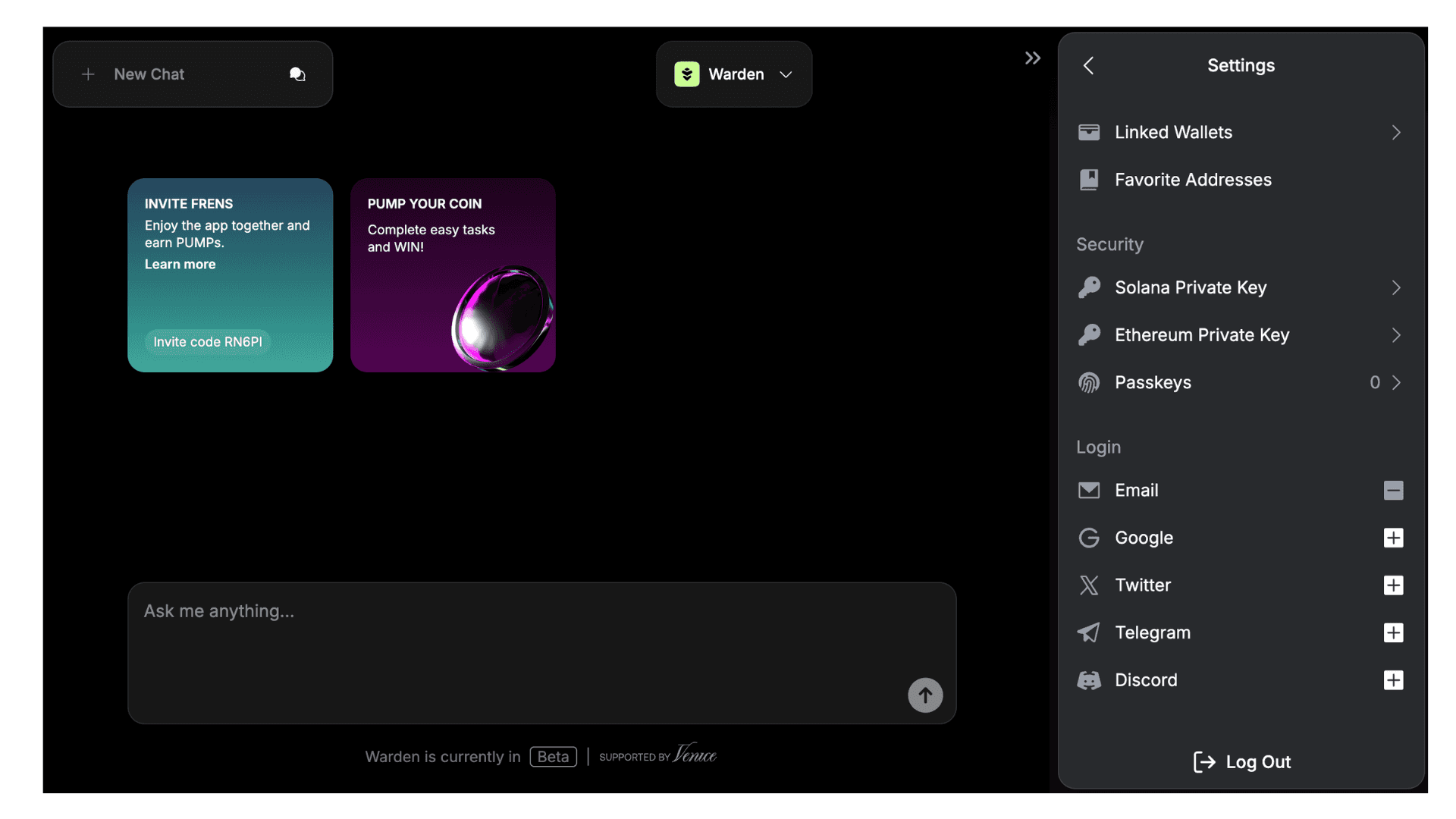 At its core, Warden is built to make crypto more usable. It does this by combining embedded wallets, natural language interfaces, and a built-in social layer to abstract away the typical complexity of onchain interactions.