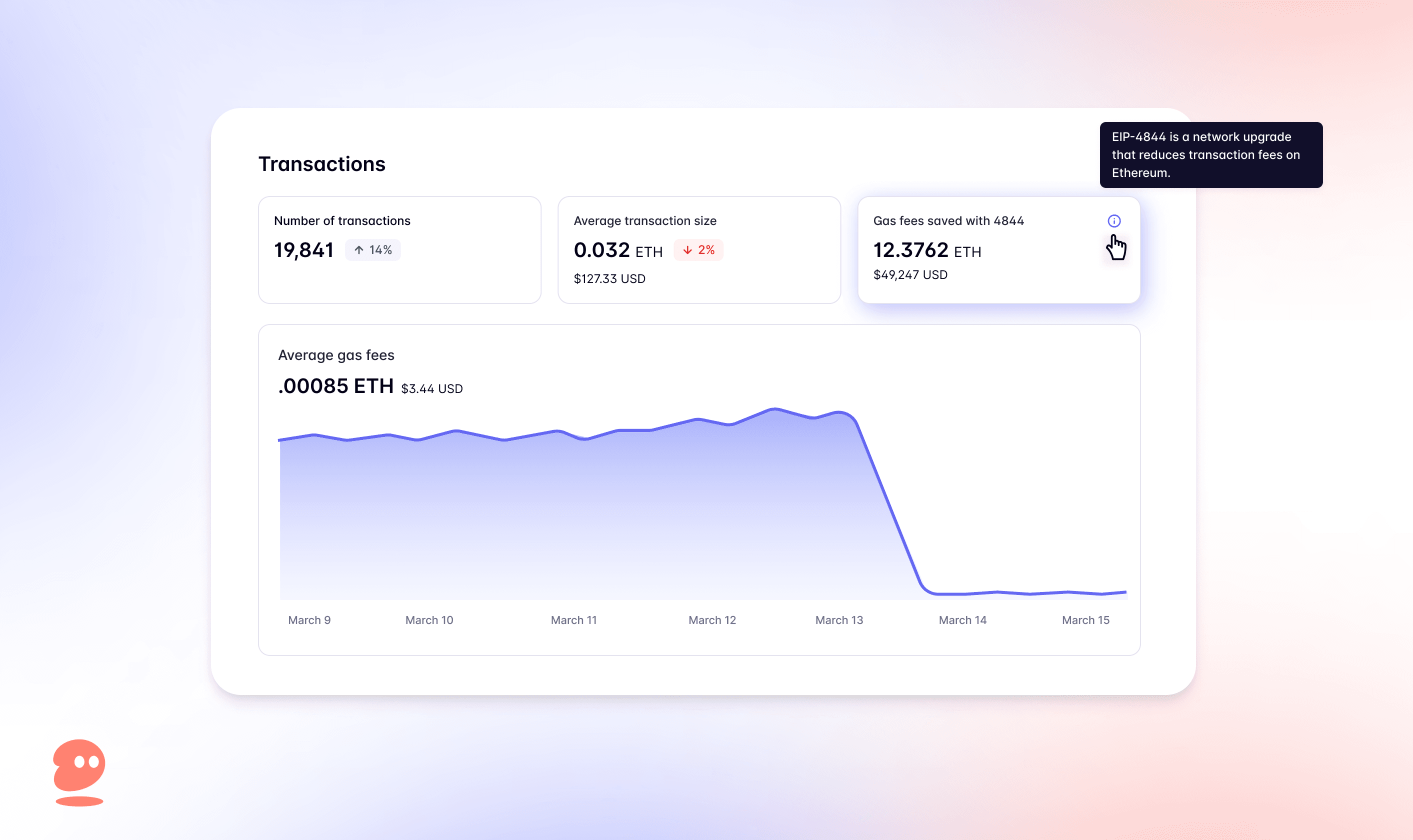 EIP-4844 goes live on Ethereum Mainnet on March 13. It introduces a new storage type (blobs) on Ethereum mainnet that allows more gas-efficient storage of rollup state from L2s. Concretely, this means that running transactions on L2s will be dramatically cheaper than it was before.