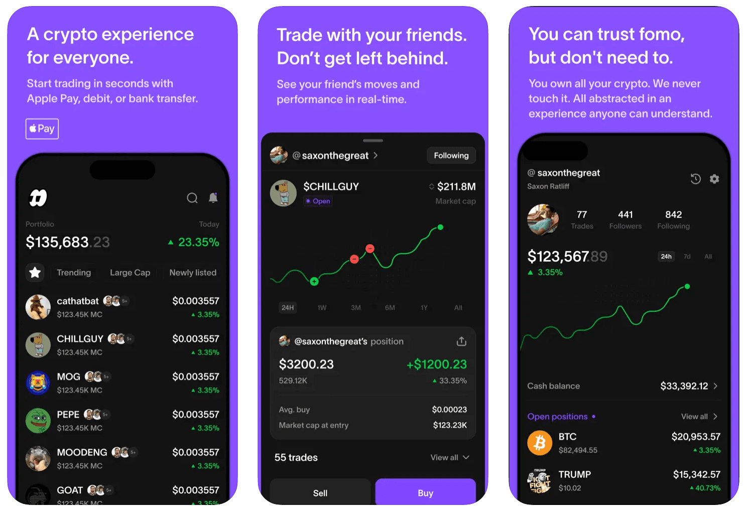 The magic of fomo lies in its simplicity: a user-friendly mobile app that makes multichain trading effortless — no seed phrases, no bridges, no extensions, no friction.